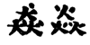 「ひょう」の漢字は犬(あるいは火)の字が3つ山型に重なったものが用いられます。